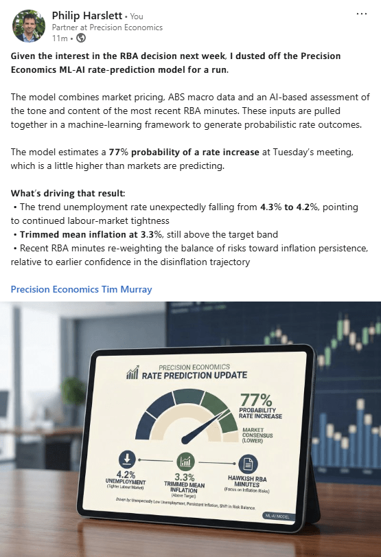 Precision Economics helps organisations make sense of data and policy questions quickly, clearly, and with technical rigour.